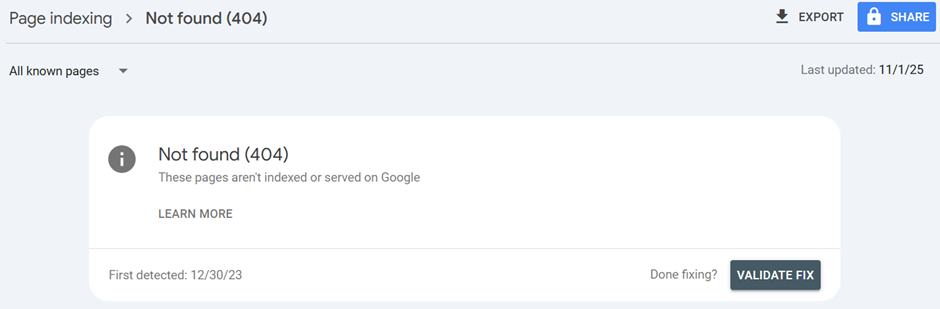 • What It Means: Google has found a URL that exists in your sitemap or through internal links, but when it tries to visit, your server returns a "page not found" error. This wastes your crawl budget and creates a poor user experience.
