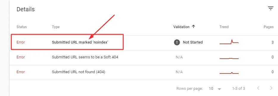2. Submitted URL Marked with 'Noindex'